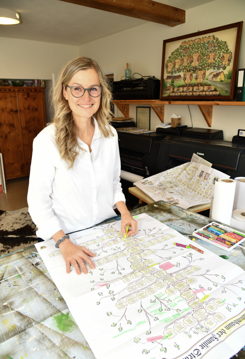 2020 habe ich, Eva Rosenlechner, die Stammbaummalerei übernommen und führe diese nun in zweiter Generation mit viel Freude weiter. Mein Interesse an Familiengeschichten und Kulturen und zuletzt meine Ausbildung zur Grafik Designerin lassen mich Ihr individuelles Stammbaumgemälde gestalten. Bei der Umsetzung stehen Ihre Wünsche im Vordergrund. Ich berate Sie sehr gerne was die Vielfalt der Darstellungsmöglichkeiten anbelangt.